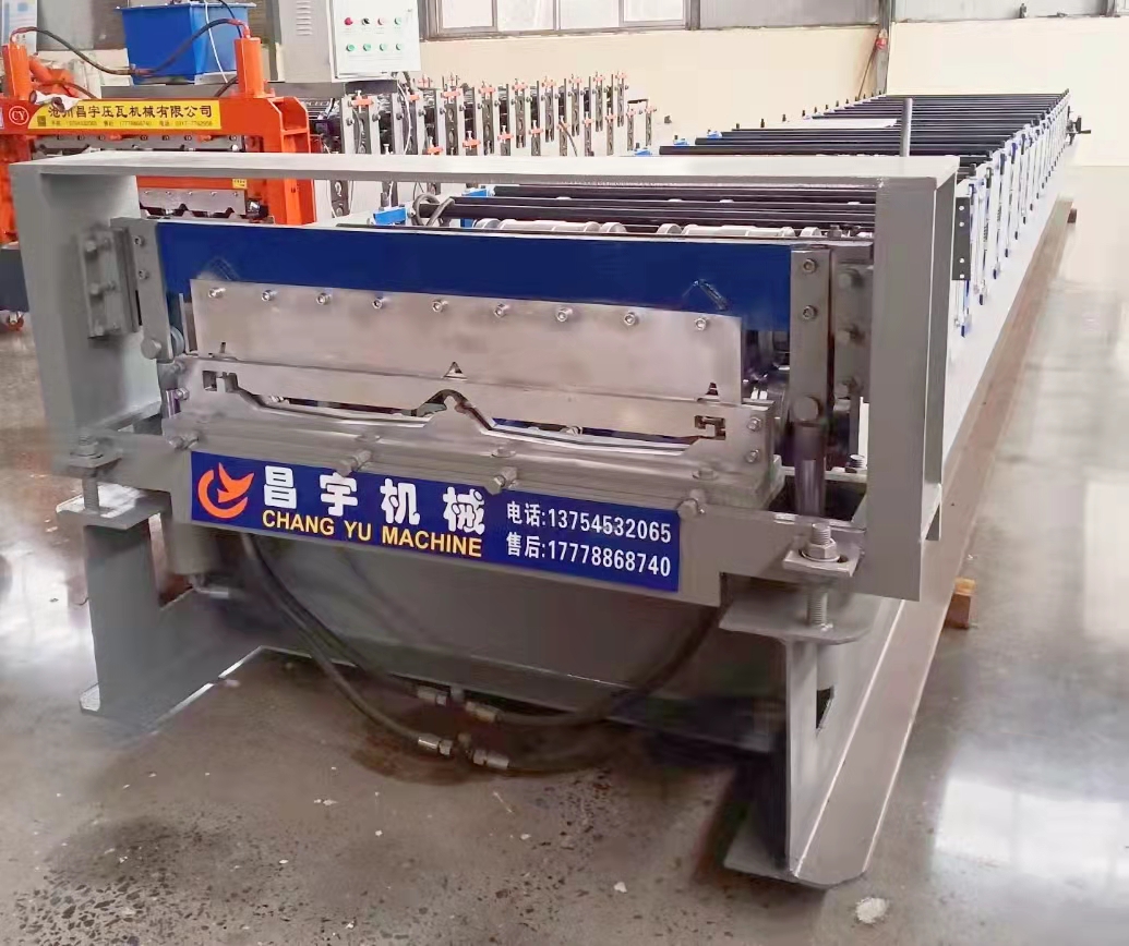 高空角驰成型机主要是由装料架,进料导入平台,成型主机,成型剪切装置,液压泵站,电脑控制箱等几部分组成。角驰压瓦机生产的各种屋面板、墙面板和普通的屋面板、墙面板相比具有防渗漏性能,同时配合起拱机可以制作成无梁拱形屋顶。